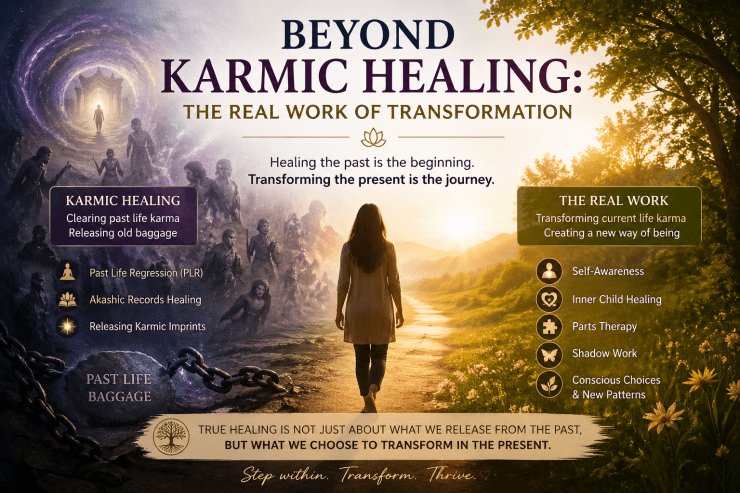 Karmic Healing—whether through Past Life Regression (PLR) or Akashic Records Healing—is often mistaken for the final step in healing. In truth, it marks the beginning of a much deeper journey. This work is powerful in helping release past-life imprints, unresolved karmic patterns, and accumulated emotional baggage. It can bring relief, clarity, and at times, profound inner shifts.