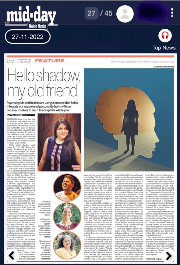 - Featured in Mid-Day (expert feature on Inner Child Healing) and a leading wedding platform (Dream Analysis)